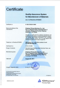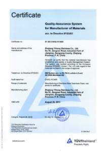 公司嚴(yán)格按ISO9001:2015《質(zhì)量管理體系—要求》、ISO14001:2015《環(huán)境管理體系 要求及使用指南》、ISO 45001:2018《職業(yè)健康管理體系 要求及使用指南》和TSG 07—2019《特種設(shè)備生產(chǎn)和充裝單位許可規(guī)則》,建立完善的管理體系。公司擁有國(guó)內(nèi)較大的12000KN冷拔機(jī)組和先進(jìn)的全溫控不銹鋼固溶退火爐等生產(chǎn)設(shè)備,同時(shí)具有ET16-159渦流探傷儀、UT16-159超聲波探傷儀、UT159-830超聲波探傷儀、H159-630水壓試驗(yàn)機(jī)、WAD—600液壓材料試驗(yàn)機(jī)、4XB電腦金相顯微鏡、JQ—300沖擊試驗(yàn)機(jī)、HBRVU—187.5硬度計(jì)、島津光譜儀、化學(xué)分析儀、晶間腐蝕試驗(yàn)等完善的檢測(cè)設(shè)備。